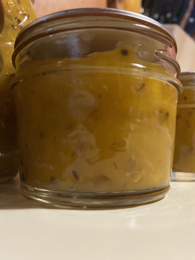 My last comment is that the taste, from what I sucked off the spoon since I had none to spare, was…lackluster. That is not surprising with a canning recipe. They usually don’t taste as good fresh as after canned and let sit for 2-3 months. I have a suspicion that overall the salt/sugar amounts provide a good base for the spices. But the spices definitely need longer than the 15-minute cook time to infuse themselves with the mango.